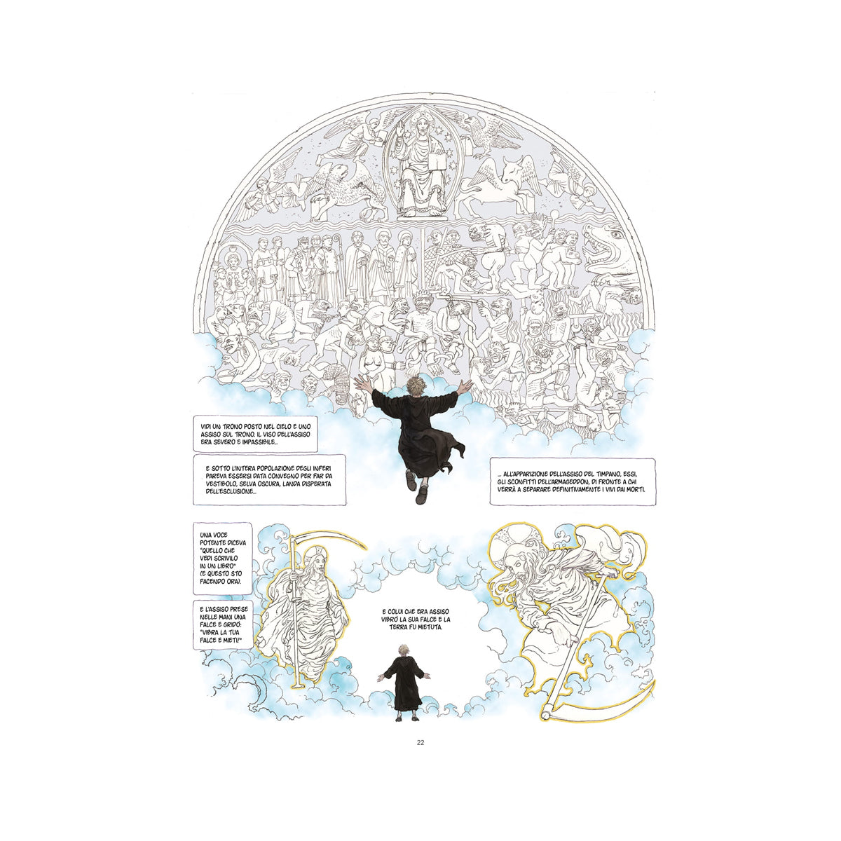 Il nome della rosa di Manara trova quindi spazio nell’operazione “matrioska” letteraria del libro di Umberto Eco, che è anche un libro sui libri che contengono altri libri. Non una superflua trascrizione, ma una meravigliosa chiosa visiva.
