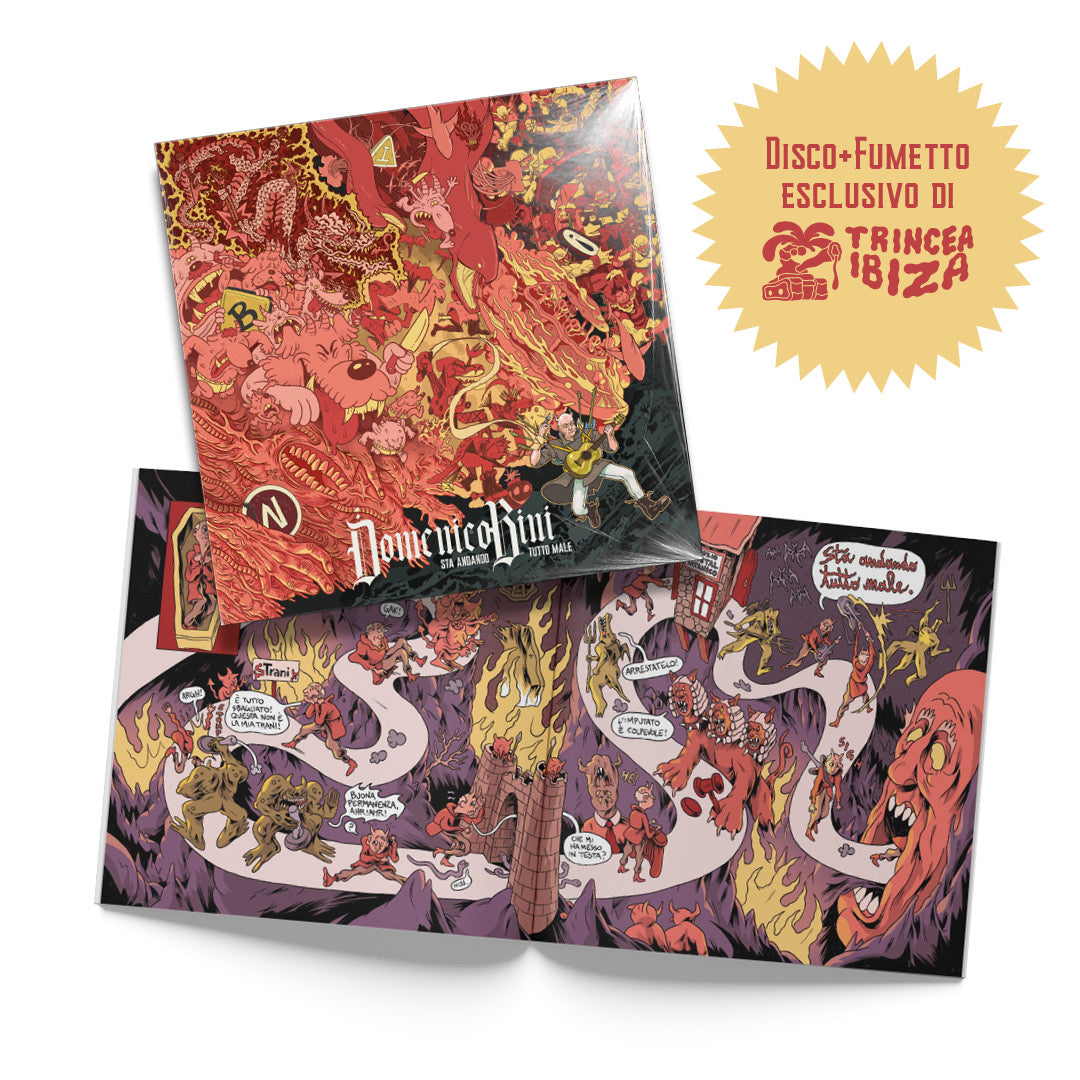 Il bundle contiene: il vinile autografato da Bini, il fumetto di Trincea Ibiza, una T-Shirt e altri gadget esclusivi.